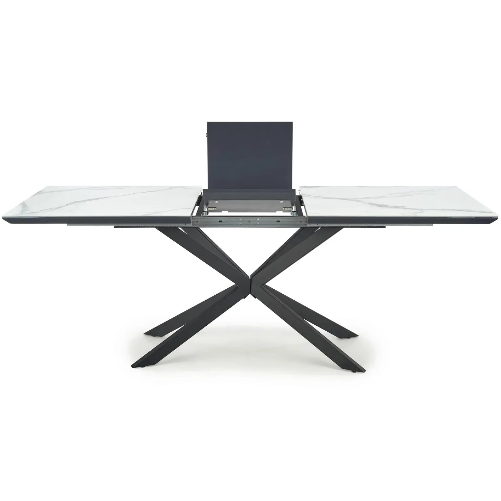 Il tavolo allungabile Lennox è un arredo scenografico e funzionale, pensato per ambienti moderni che non rinunciano all’eleganza. Il piano in effetto marmo bianco dona luminosità e raffinatezza, esaltato dal contrasto con le gambe in acciaio verniciato a polvere nero, dal design solido e contemporaneo.