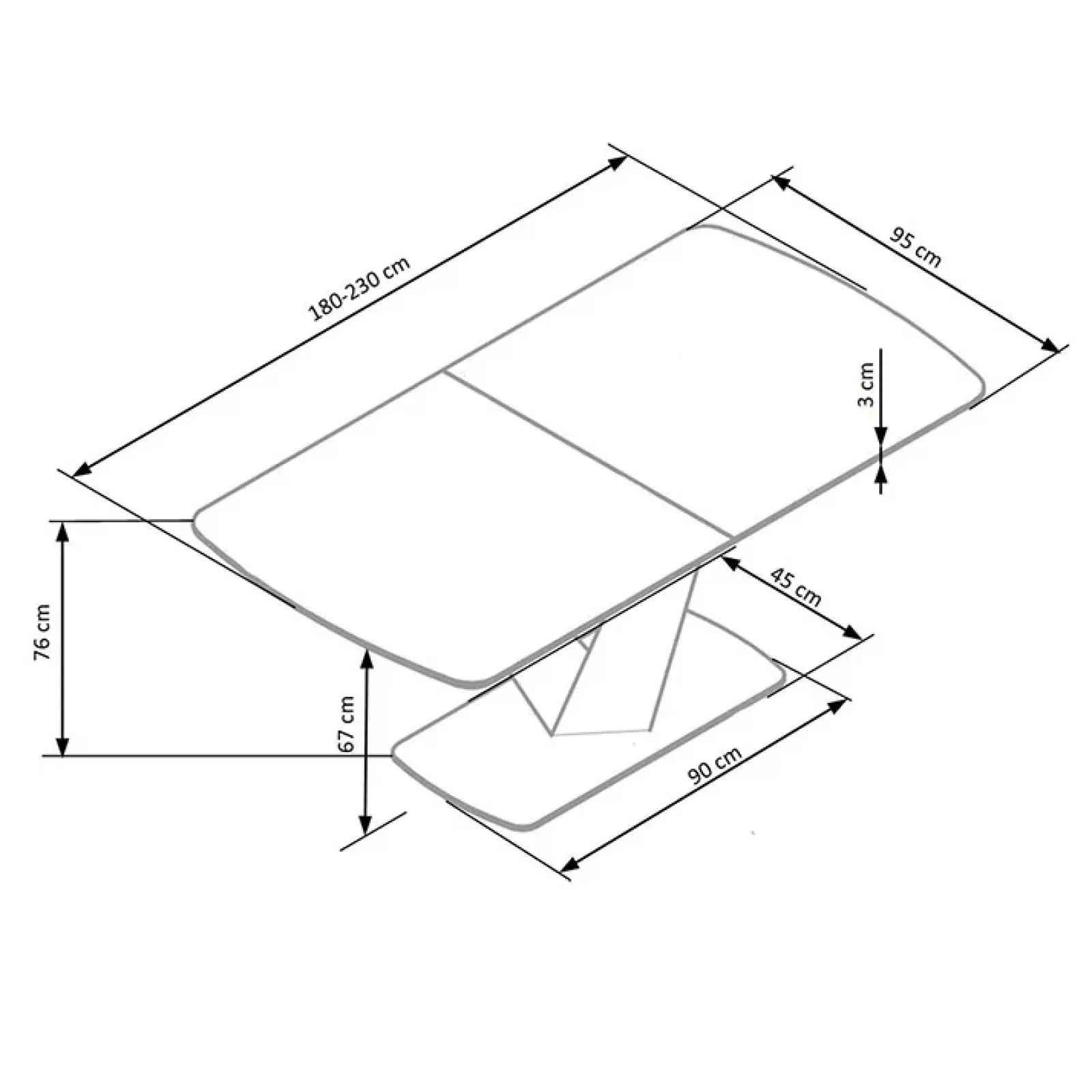 | Dimensioni | L.180-230 x H.76 x P.95 cm |