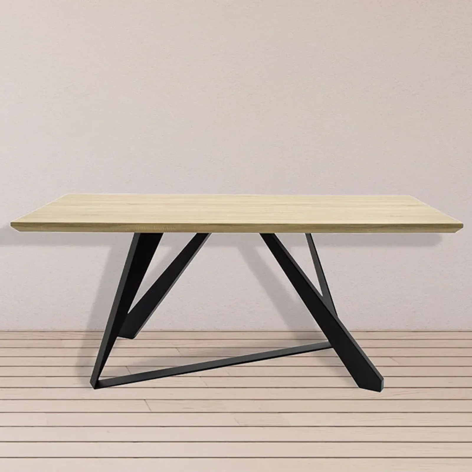Ti piace lo stile industrial? Allora non potrai non amare il nostro tavolo Pelago! È un’originale combinazione di legno e metallo. Si presenta nella finitura rovere con gambe nere in acciaio verniciato e in una forma caratteristica che conferisce unicità al prodotto. La struttura infatti è composta da due gambe indipendenti ed altre due collegate tra di loro alla base per conferire maggiore stabilità,