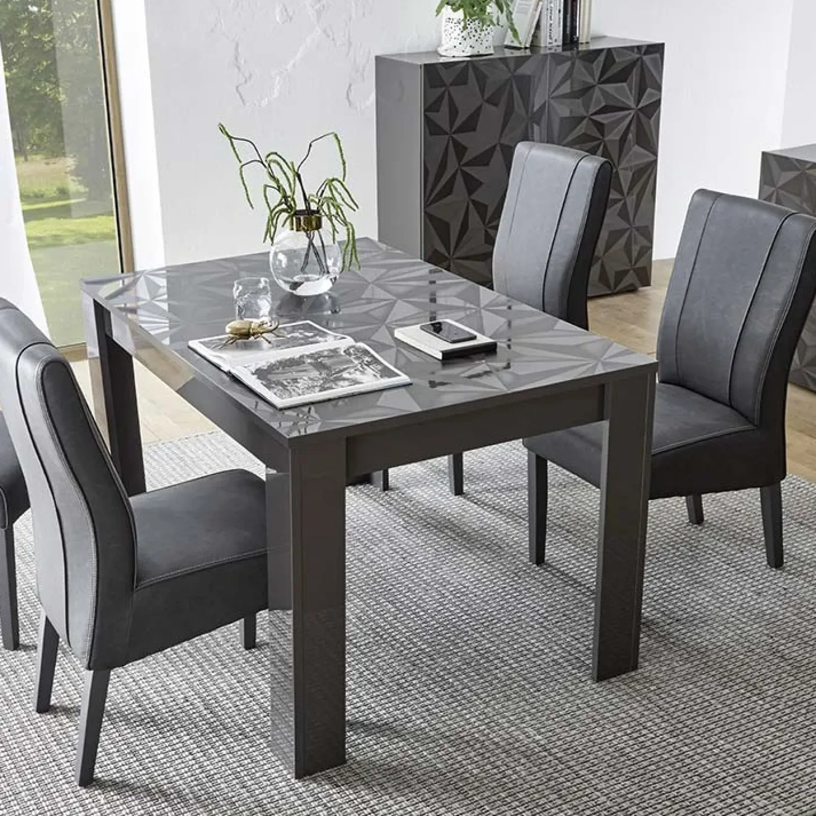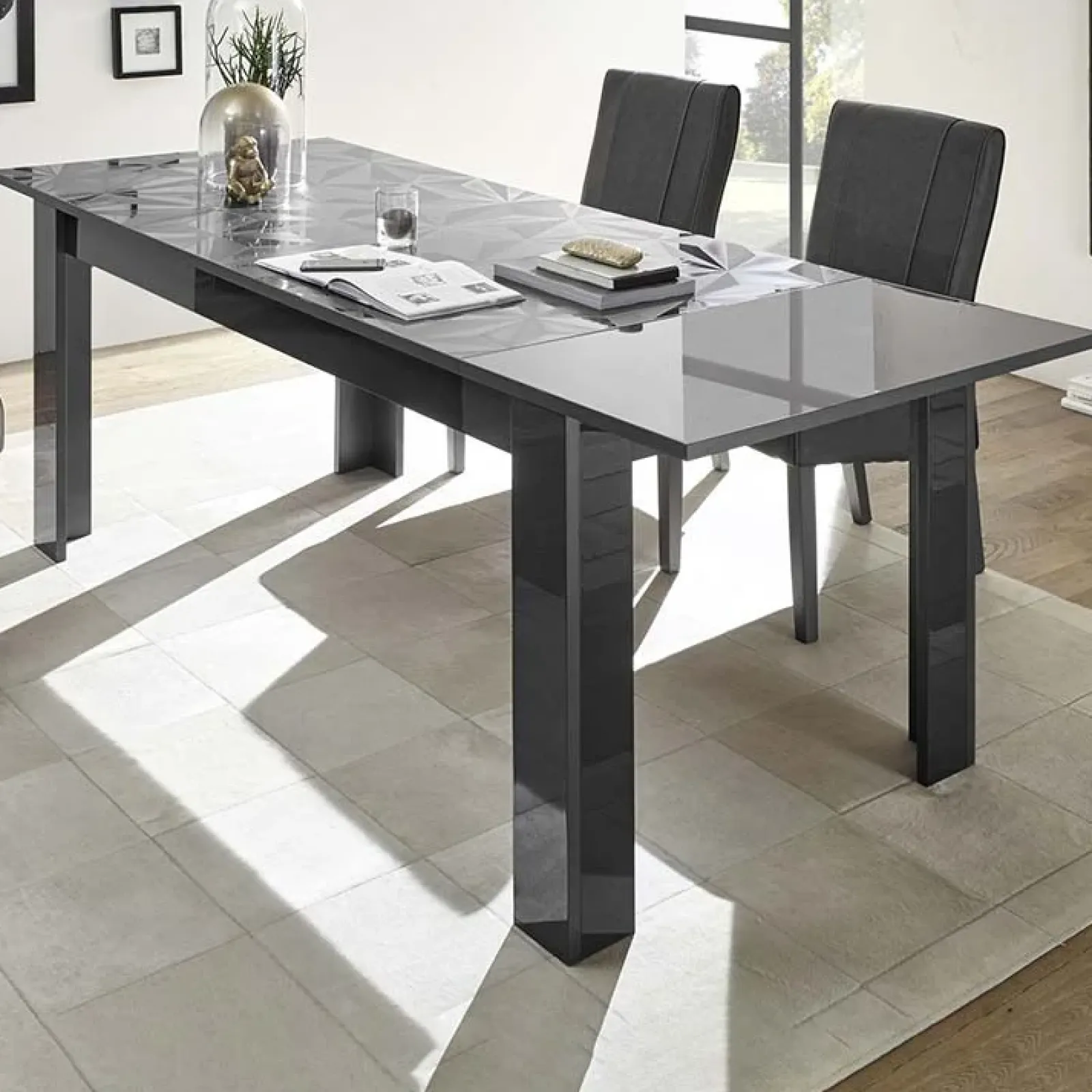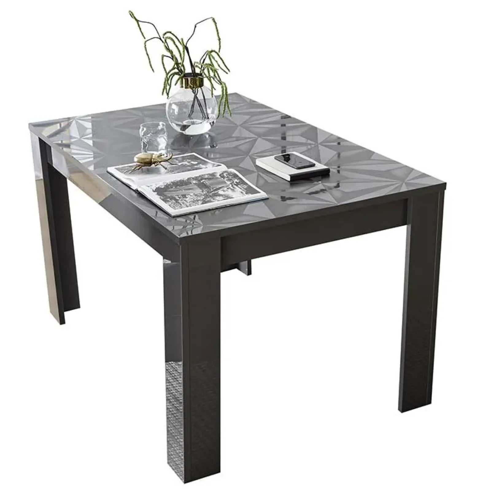 Garnero Arredamenti Tavoli Laccati|Tavoli Da Pranzo-Tavolo allungabile 137/185cm moderno grigio con serigrafia Marvis Antracite