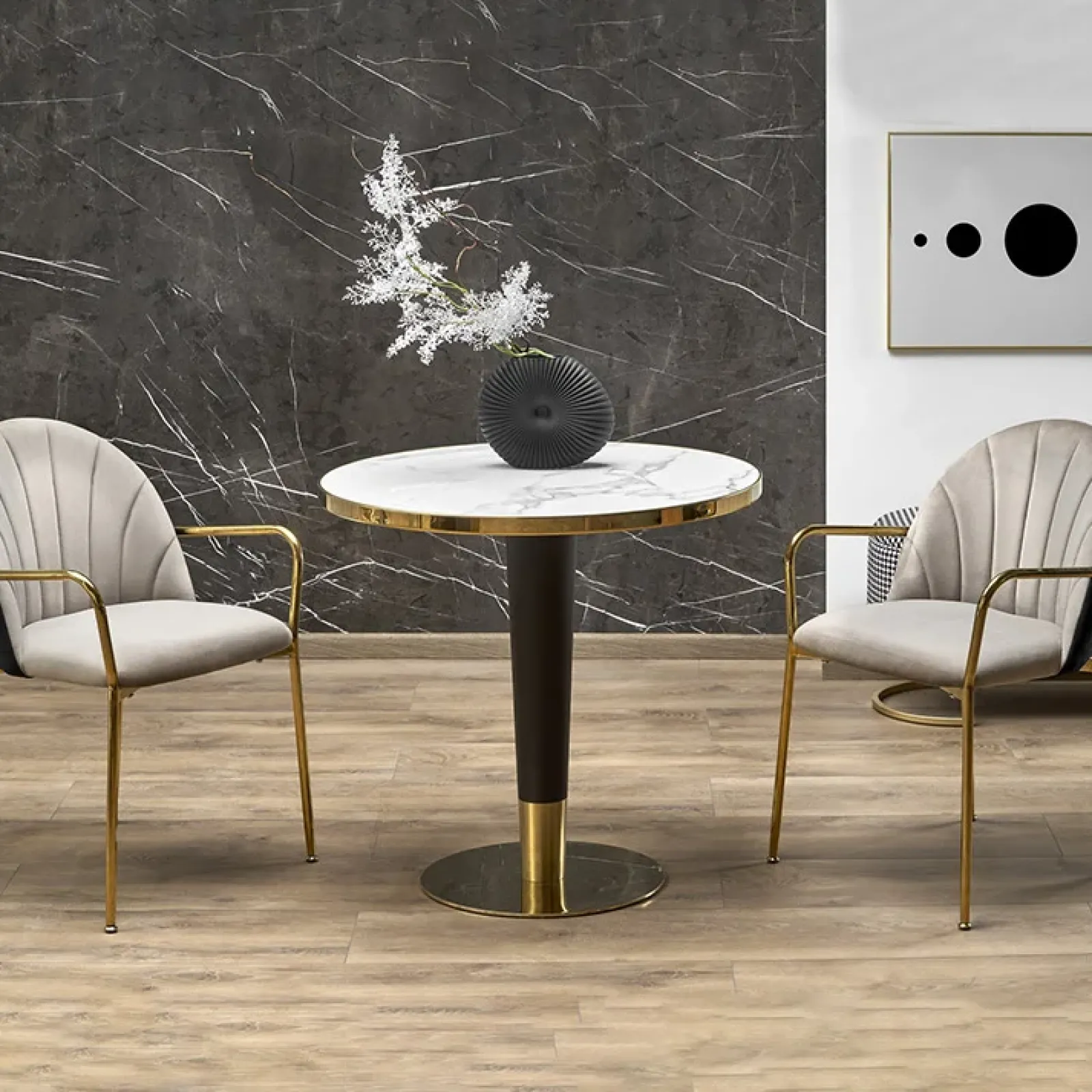 Tavolo rotondo moderno 79x74cm marmo bianco nero oro Barbera