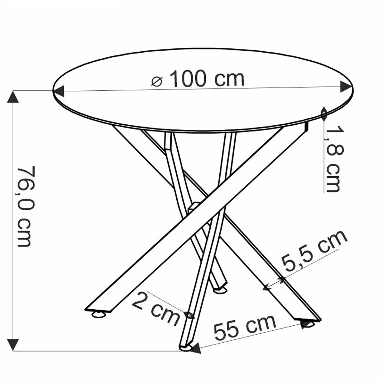 | Dimensioni tavolo | L.100 x H.76 x P.100 cm |