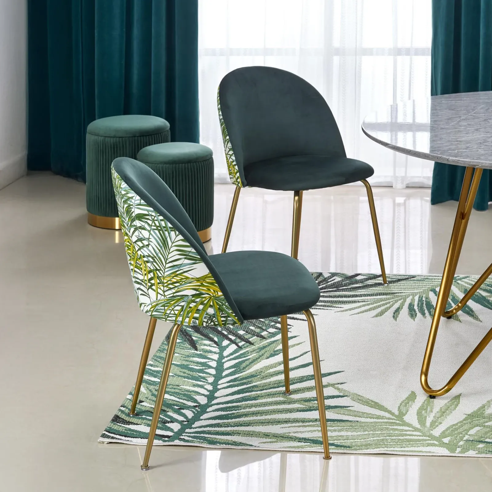 Le gambe in acciaio cromato color oro aggiungono una nota di lusso e originalità: slanciate, luminose e scenografiche, diventano un vero e proprio dettaglio di stile. Il gioco di contrasti tra la superficie marmorizzata e la brillantezza dell’oro rende Arak un pezzo d’arredo capace di elevare qualsiasi sala da pranzo.