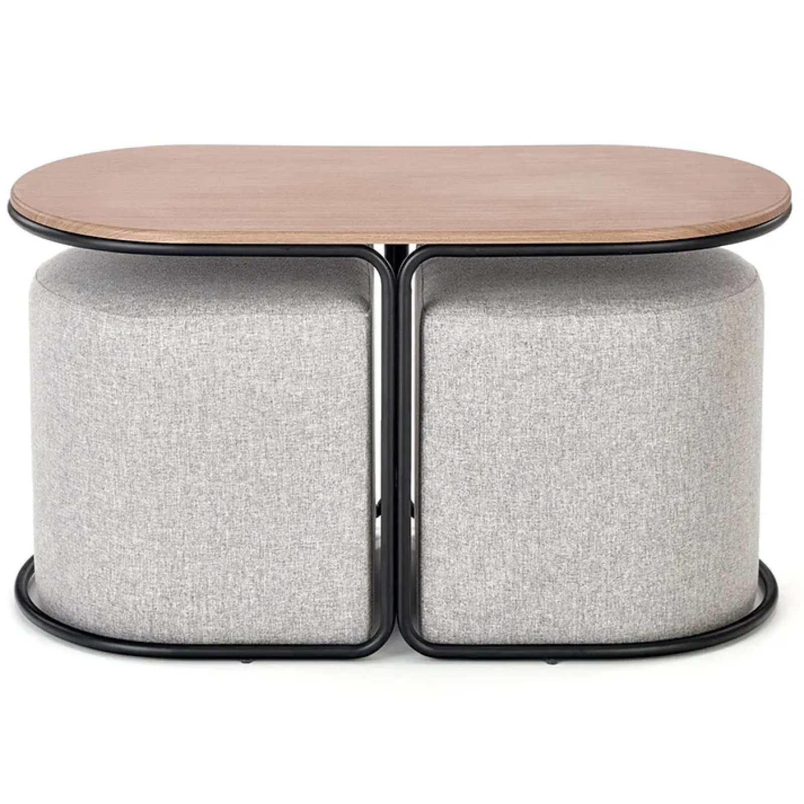 Tavolino da salotto con pouf in tessuto noce grigio nero Duchessa