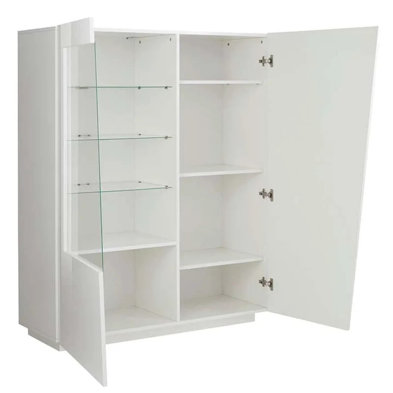 Candia Gihome ® è dotata di 2 ante battenti, di cui una a vetro. Al suo interno il mobile è suddiviso in due vani: a destra sono presenti 3 ripiani, perfetti per nascondere tutto quello che non vuoi mostrare; nel vano a sinistra troverai invece un ripiano in legno nobilitato e, dietro l’inserto di vetro, 3 eleganti ripiani in vetro trasparente per mettere in risalto le stoviglie o i tuoi oggetti di design preferiti!