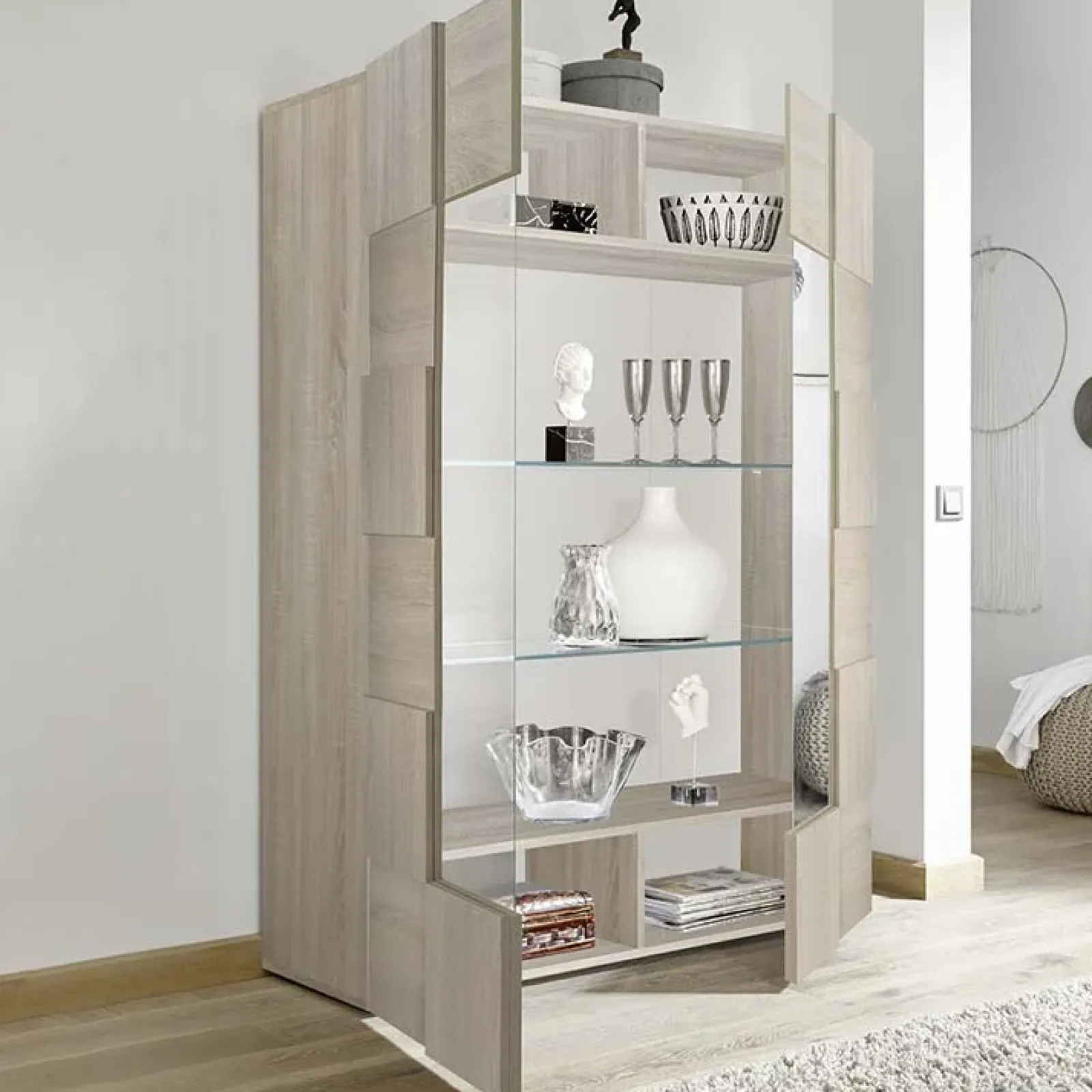 Garnero Arredamenti Vetrinette|Vetrinette-Vetrinetta 121x166h cm 2 ante moderna samoa Obsession Rovere