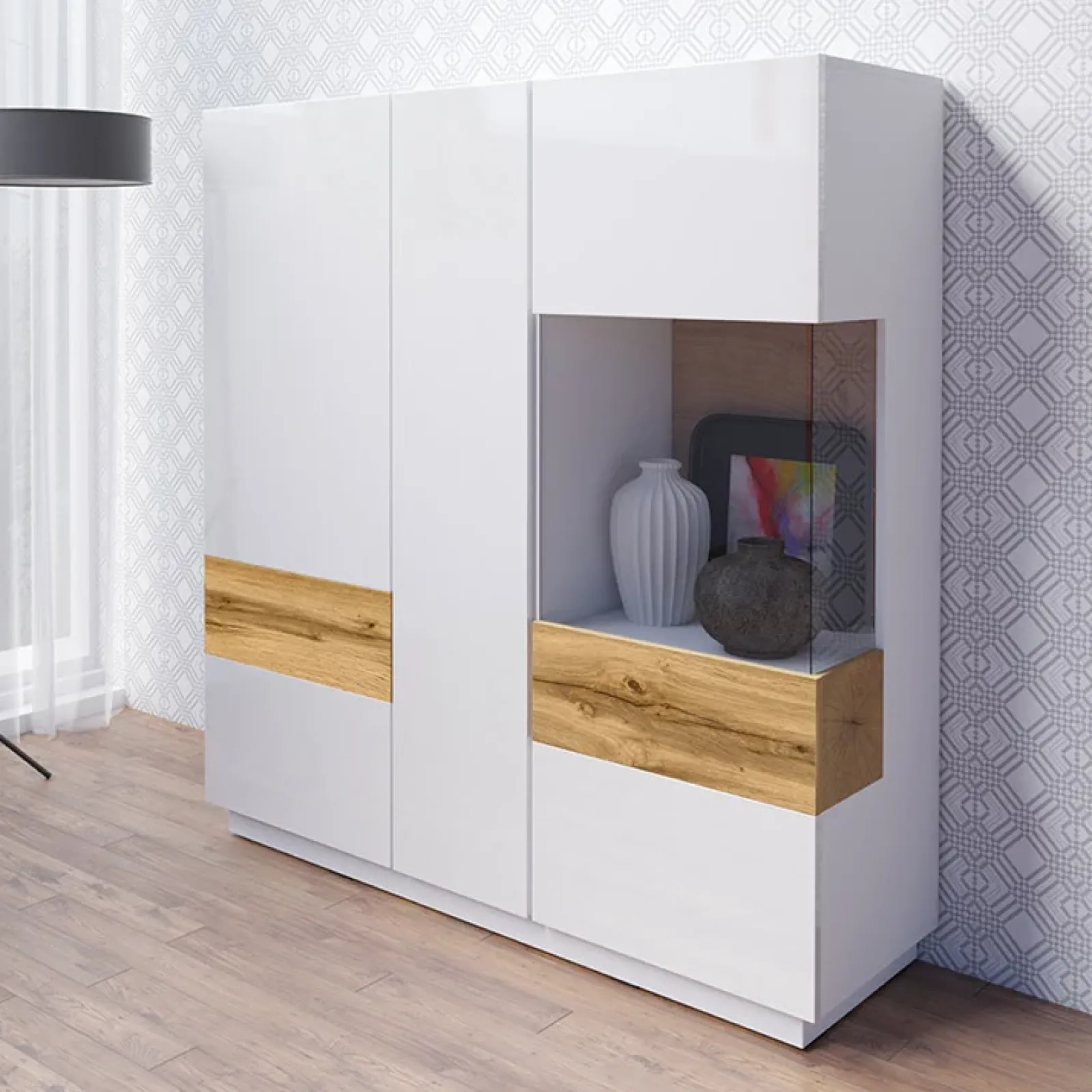 Vetrina 3 ante Bahama bianco lucido rovere