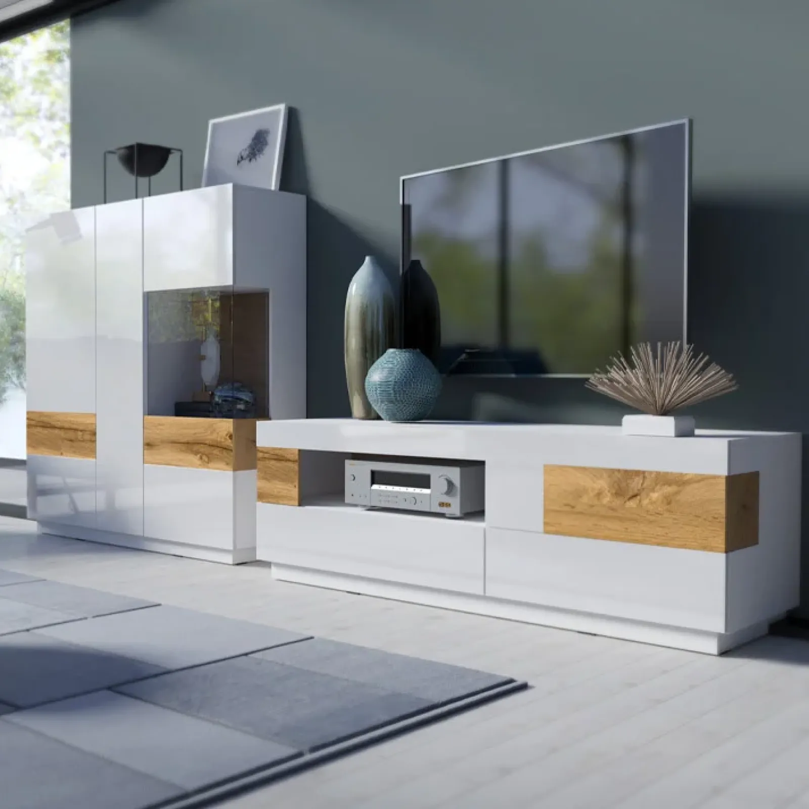 - Vetrina bassa Bahama sinistra 2 ante bianco lucido rovere