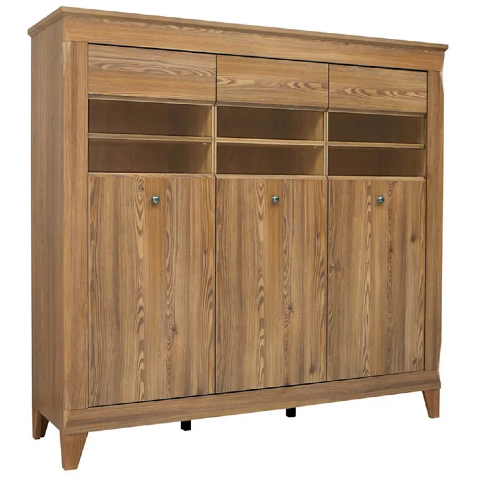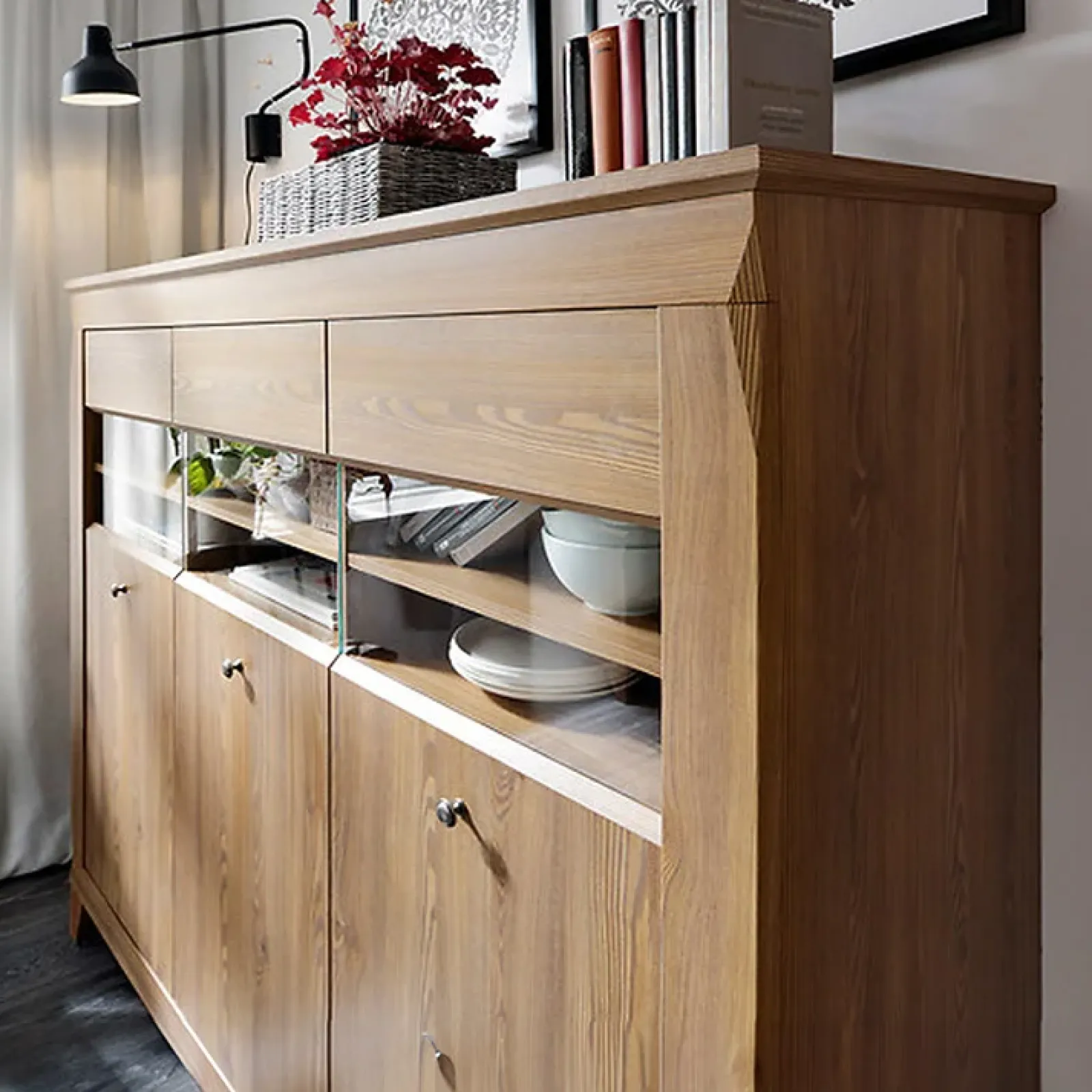 Aggiungi un tocco di classe e funzionalità al tuo soggiorno con la vetrinetta rovere scuro Lucca. Con dimensioni di 156x151cm, questa vetrinetta offre ampio spazio di archiviazione con tre ante e quattro cassetti, perfetti per organizzare e mostrare i tuoi oggetti preferiti. Realizzata con materiali di alta qualità, sarà un elemento durevole e sofisticato nel tuo arredamento.