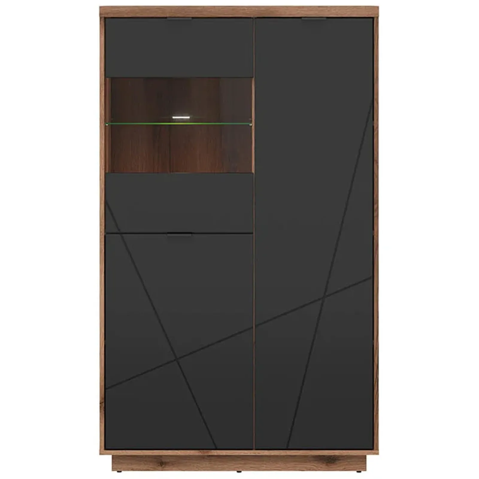 Vetrinetta 157x94cm 2 ante rovere scuro nero opaco Elin: mostra tutti i tuoi preziosi con stile!