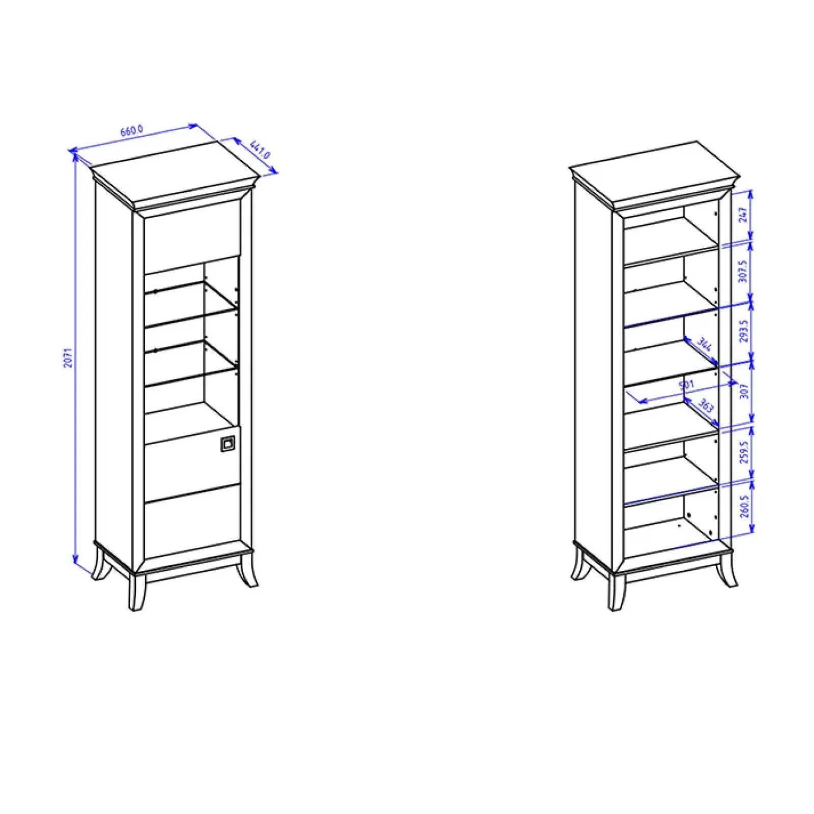 - dimensioni totali: L.66 x H.207 x P.44 cm