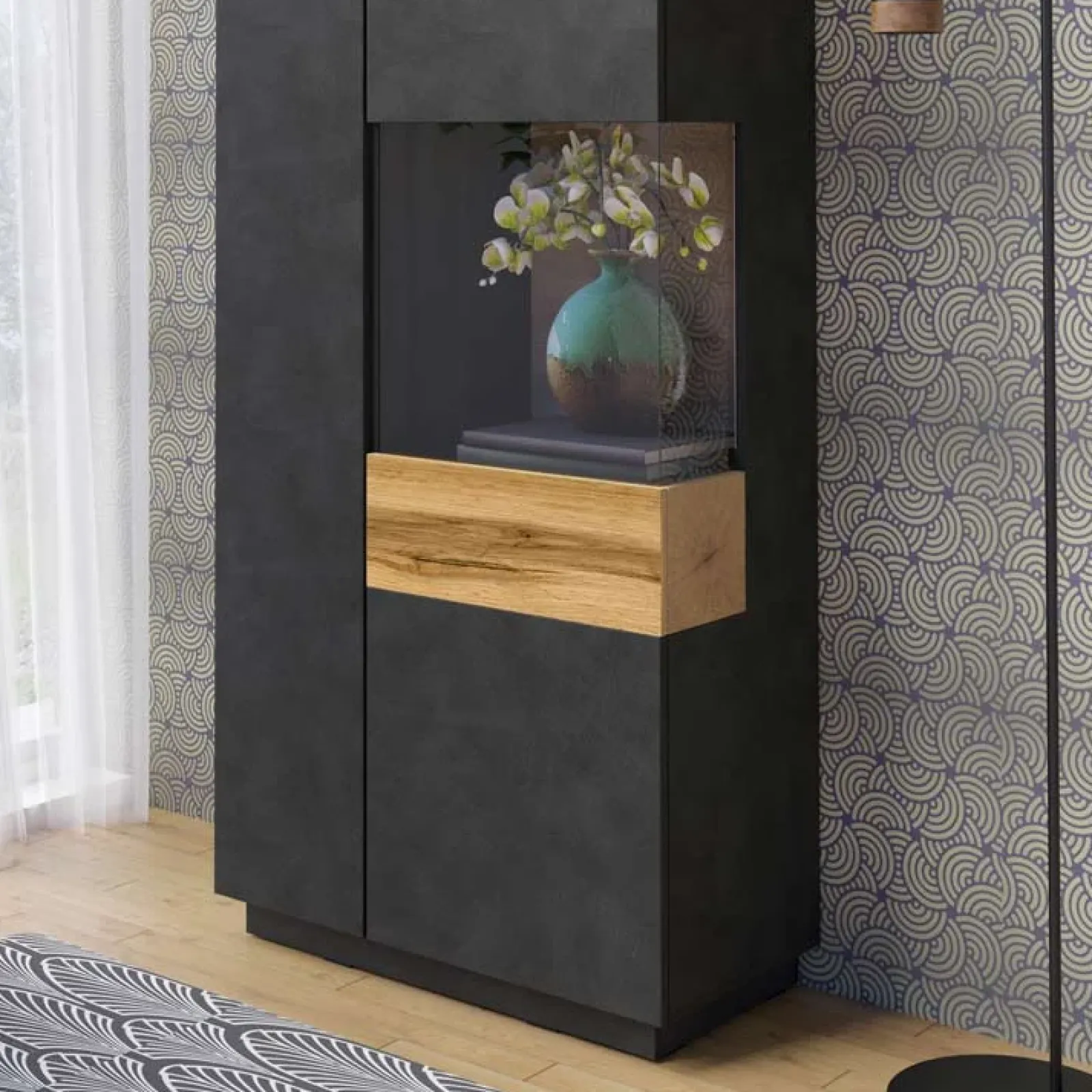 Garnero Arredamenti Vetrinette|Vetrinette-Vetrinetta 80x207h cm 2 ante destra antracite rovere Bahama Antracite – Rovere Rustico